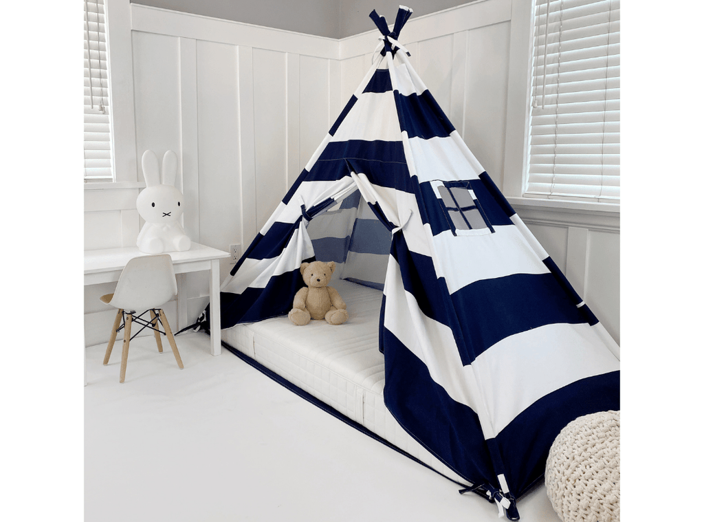 Vendor:Domestic Objects Vendor:Domestic ObjectsDomestic Objects Play Tent Canopy Bed in Navy Blue and White Stripe Canvas WITH Doors- Regular price