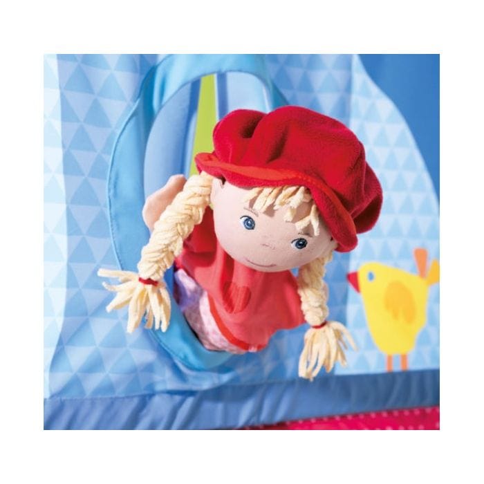 This puppet theater for doorways will encourage creativity and language development. It can be clamped into any door frame in no time thanks to the telescopic rod. Even before the curtain parts, the figures can look out individually through the "magic hole" and inspire the curiosity of the audience. Made in Germany. Lead Time 12-14 Weeks.