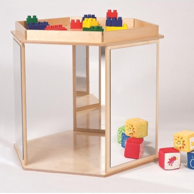 Mirrors inside and out! This versatile piece has shatterproof acrylic mirrors that encourage children to explore a world of endless reflections and the interior provides a great play space. The handy lip along the top perimeter prevents objects from falling off. Constructed in beautiful, durable 15mm birch plywood in safe, non-toxic natural UV finish that won't yellow and withstands rigorous use. Made in USA. GreenGuard™ Gold certified. Lifetime Warranty.