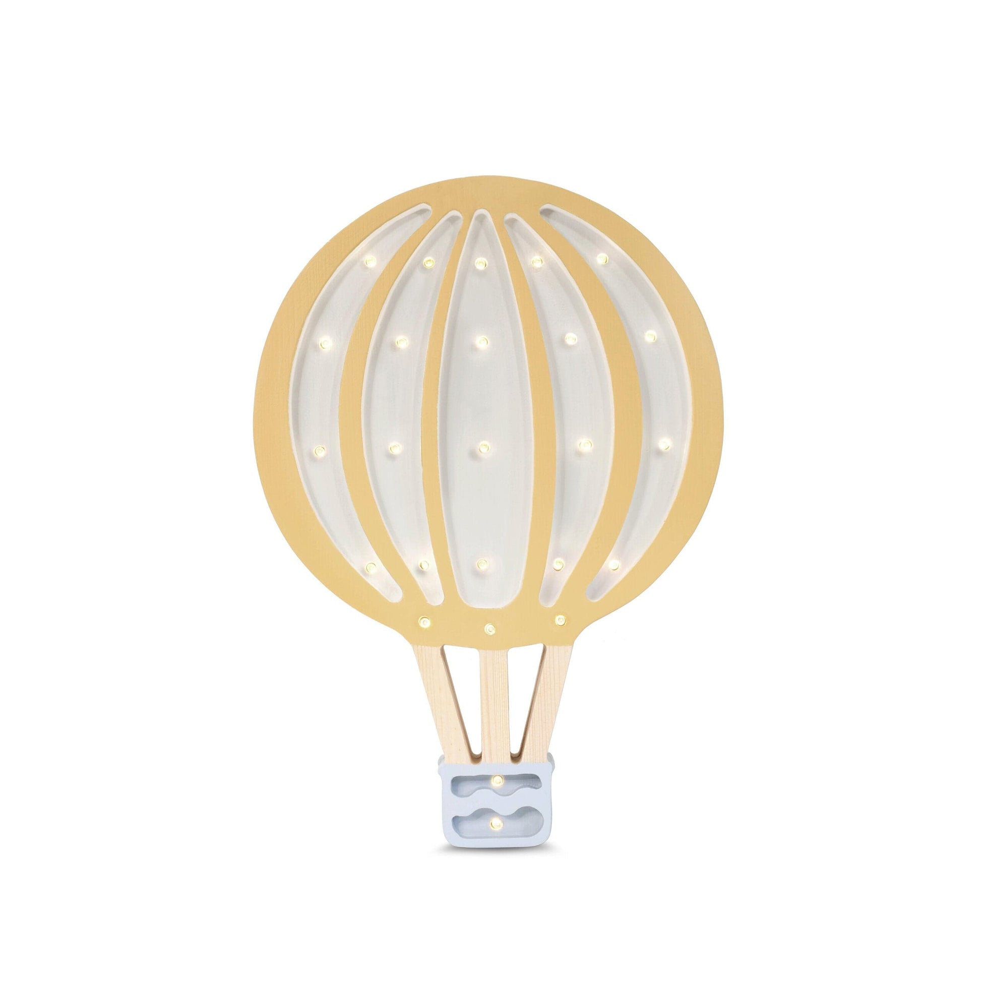 This amazing light is handcrafted from 100% natural pinewood, making it as strong and durable as it is beautiful. Up and away! This Little Lights Hot Air Balloon Lamp is likely to become a family heirloom! Order in multiple colors to create a sensory lightscape on the wall of your playroom or nursery. Please note colors: Cappuccino Rainbow, Circus Joy and Mustard are made to order and have a 4-8 week lead time.