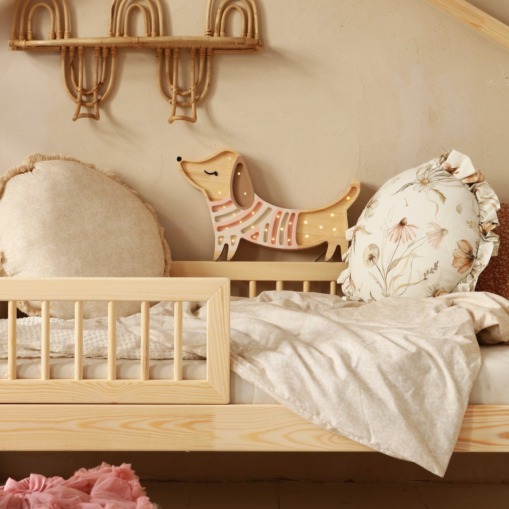 This high-quality children's light is handmade from 100% natural pinewood, making it as strong and durable as it is beautiful. This adorable Puppy Lamp adds the light-hearted energy of a playful pup to your nursery or playroom decor. Give your child's room the glow of cuddly companionship by ordering one today!