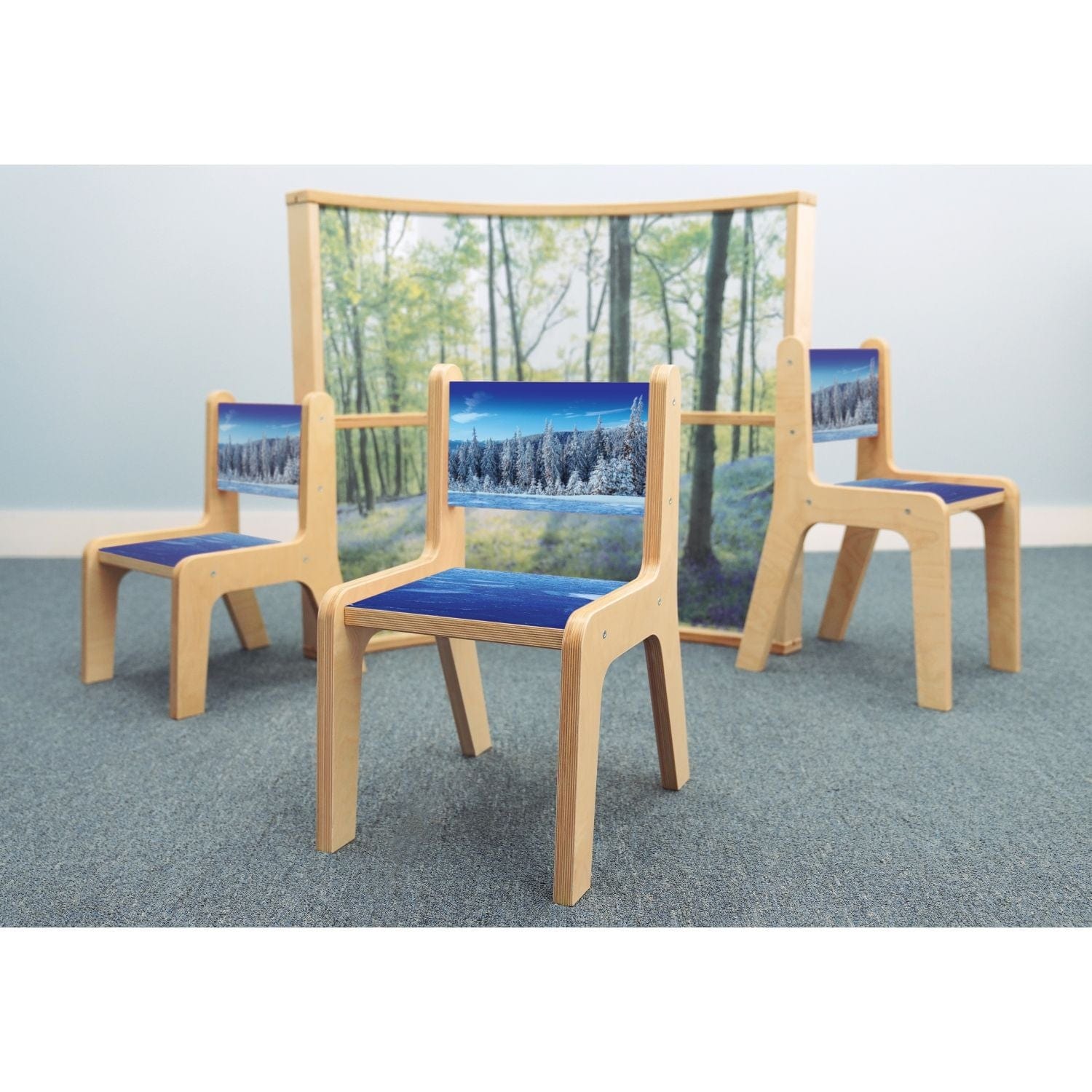 A child's chair like no other! The exclusive design evokes winter with captivating realism and integrates perfectly with all other furniture pieces in our award-winning biophilia-inspired Nature View Collection. Create a season-themed activity area, reading space, or entire room environment! Constructed in beautiful, durable 1-inch birch plywood in safe, non-toxic natural UV finish that won't yellow and withstands rigorous use. Made in USA. GreenGuard™ Gold certified. Lifetime Warranty.