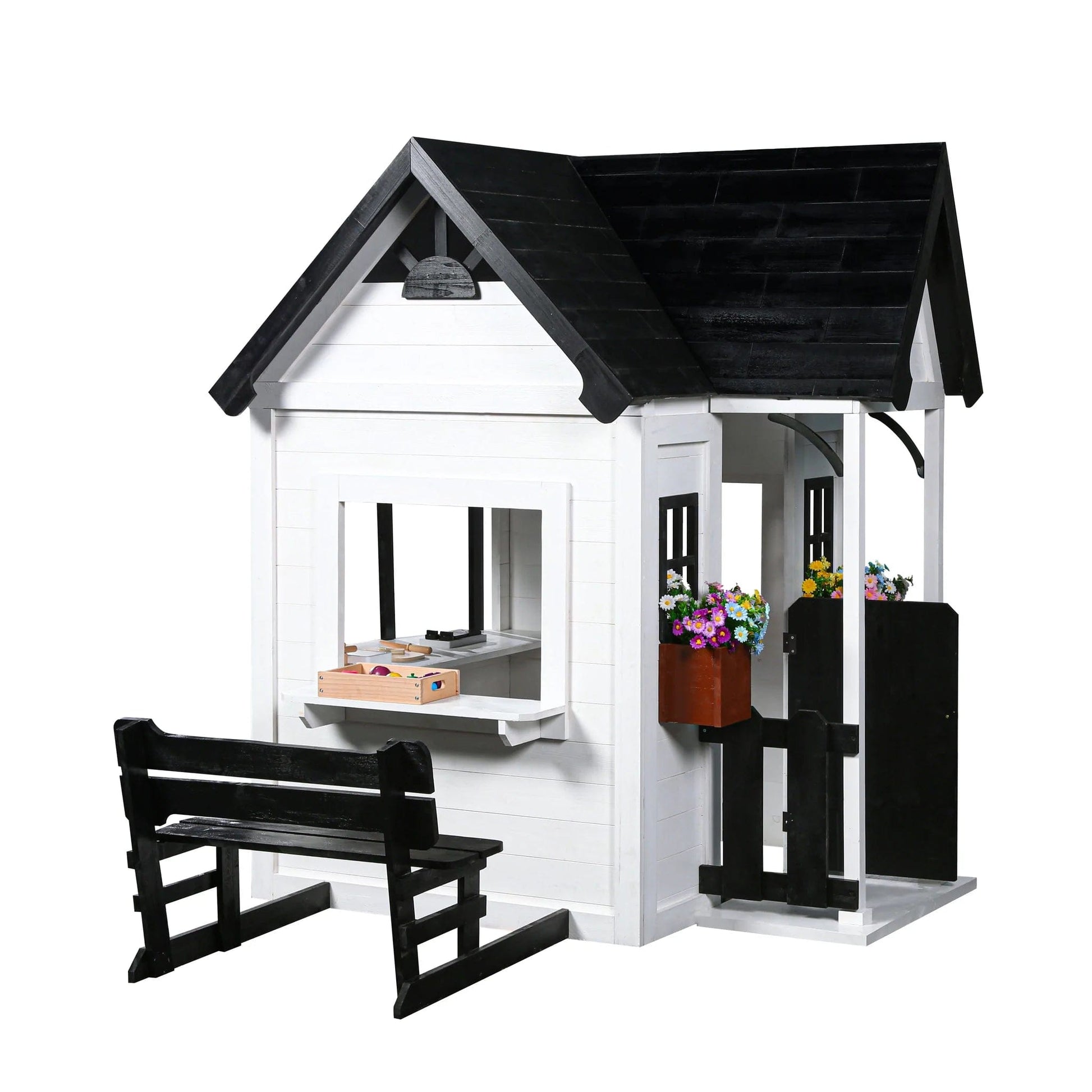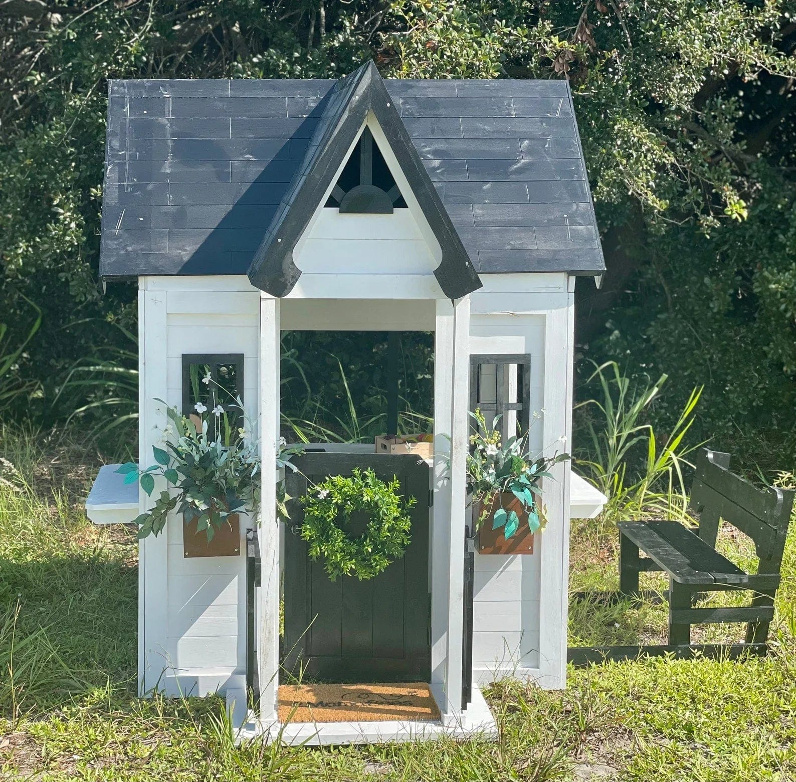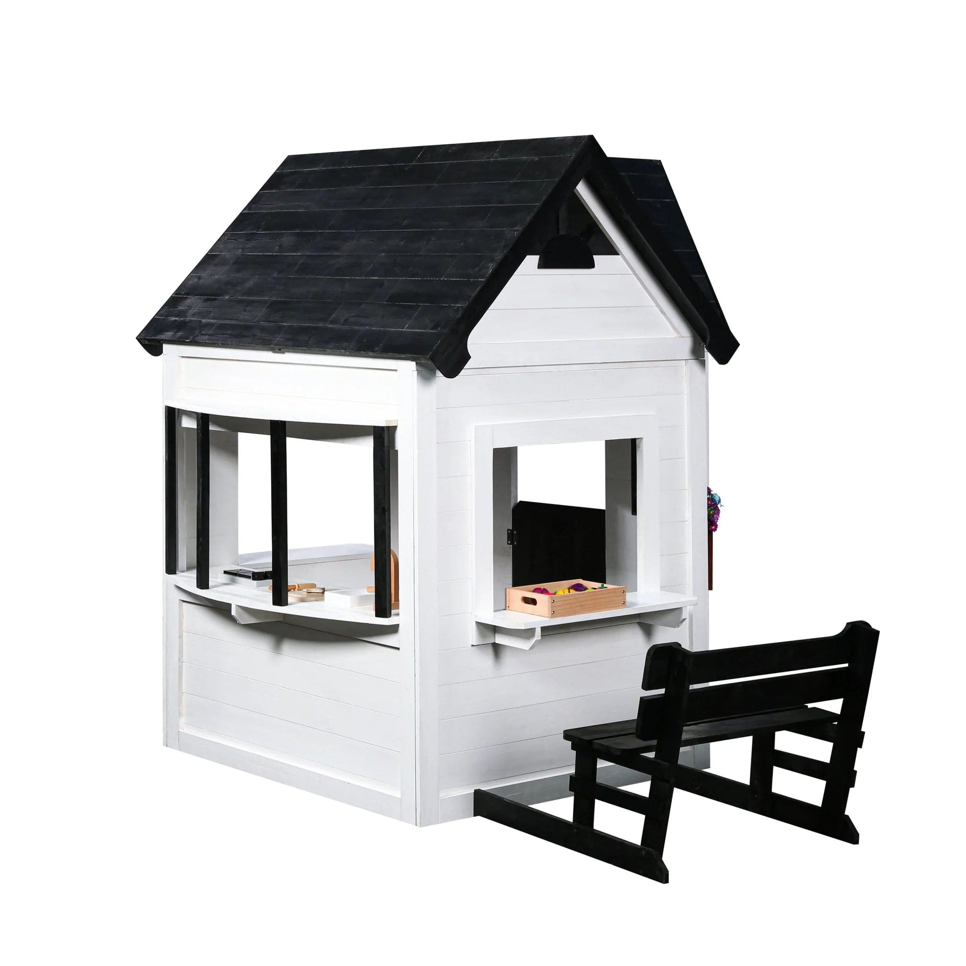 The Oceano Playhouse is crafted from the finest furniture-grade wood and finished with only non-toxic products. It was rigorously tested to comply completely with all CPSC requirements as well as passed all F963 toy testing guidelines. The beautiful white and black farmhouse design will create a stunning addition to any backyard. The Oceano Playhouse includes a built-in kitchen, beautiful wooden play food and cedar window boxes to create your own potted garden. Made in the USA