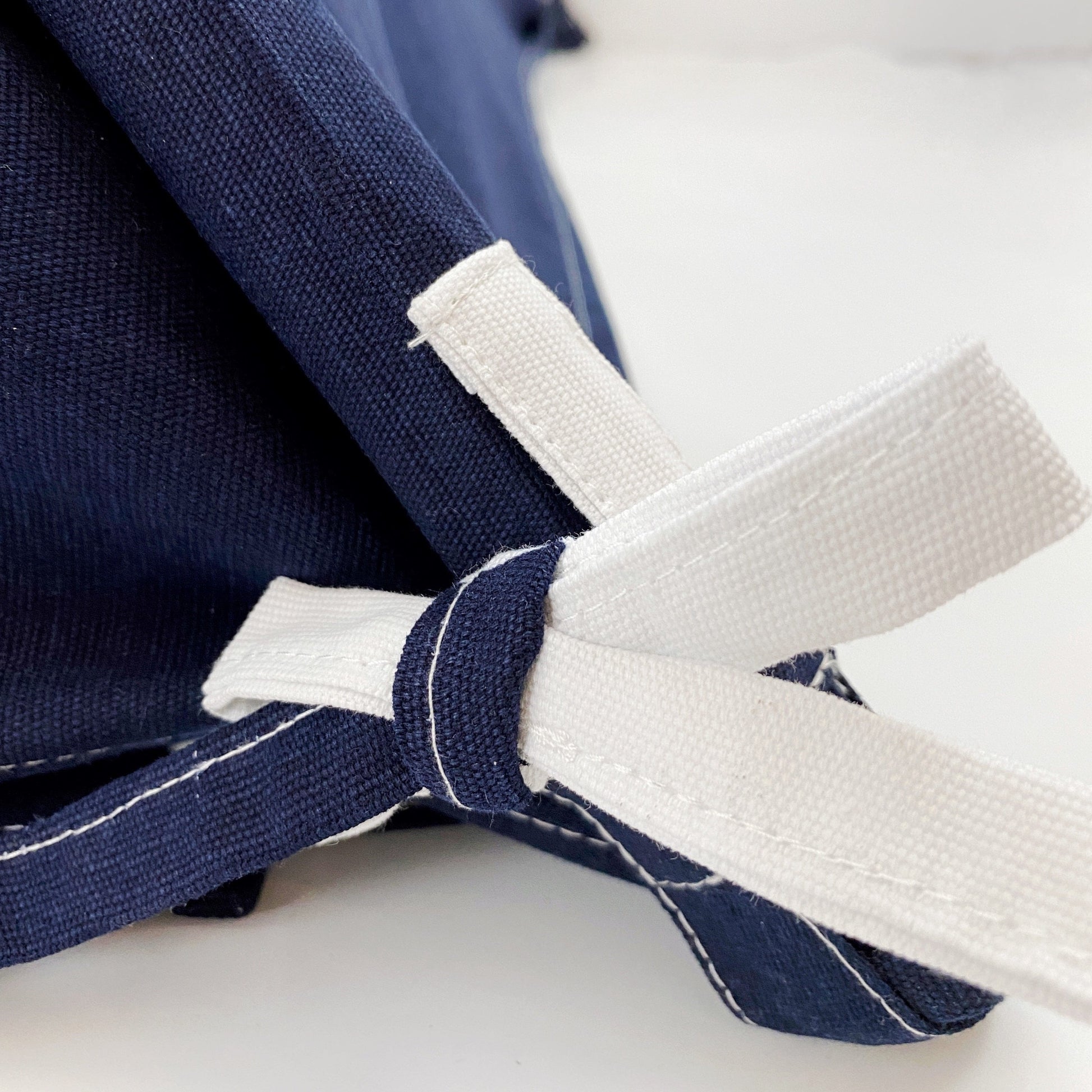 Made from cotton canvas in navy blue and white stripe. The entire tent will be made in the same cotton fabric. We use custom made wood dowels for the structure of this tent.