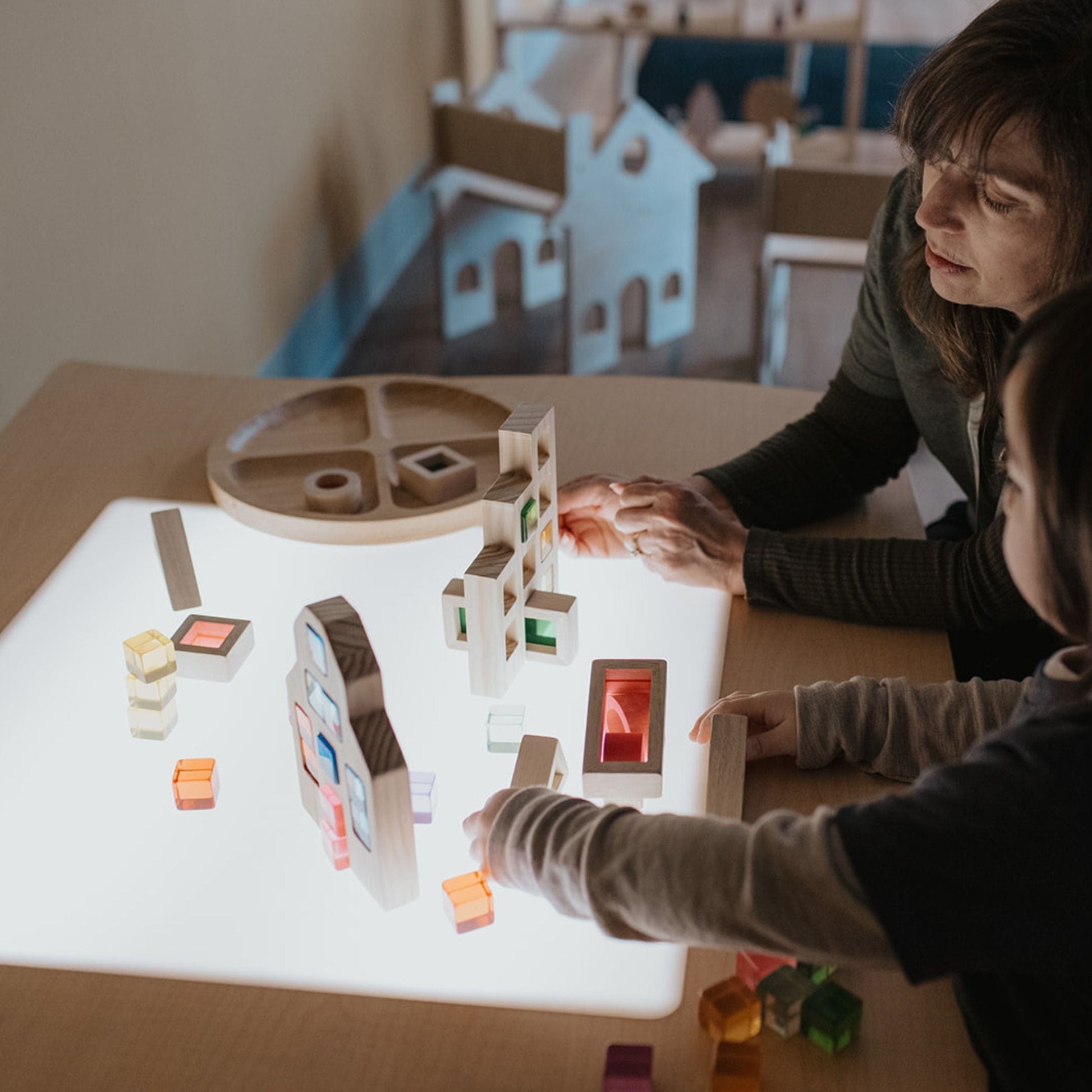 Light up learning (literally) with our Reach Light Table. It’s not only a tool for investigation but also a canvas for creativity. Whether it’s shining a new light on math concepts, exploring natural materials, or being used as a snack table, this multifunctional element brings versatility and discovery into any lesson. Available in adjustable heights, it grows with your students and supports every age group.