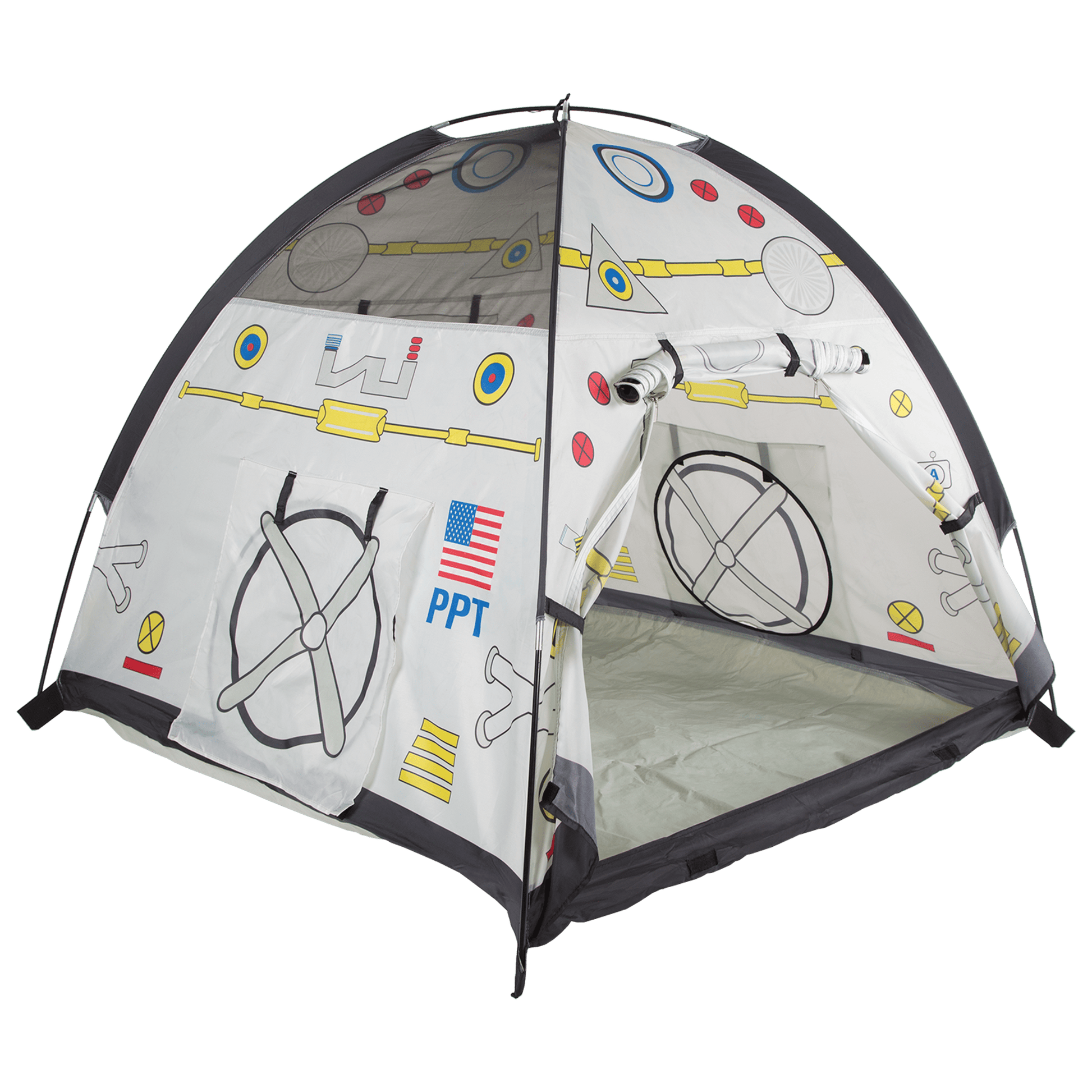 5, 4, 3, 2 1 Blast Off! Climb into your very own "Space Module" for interplanetary exploration. Comes complete with 2 roll up "hatch flaps" for secret access. You can "dock" with our "Space Dome and Lunar Tube" combination (item # 40210 sold separately) via the hatch as well. Exciting graphics make this a real life play experience. This "Space Module" has a roll up entry door for easy passage