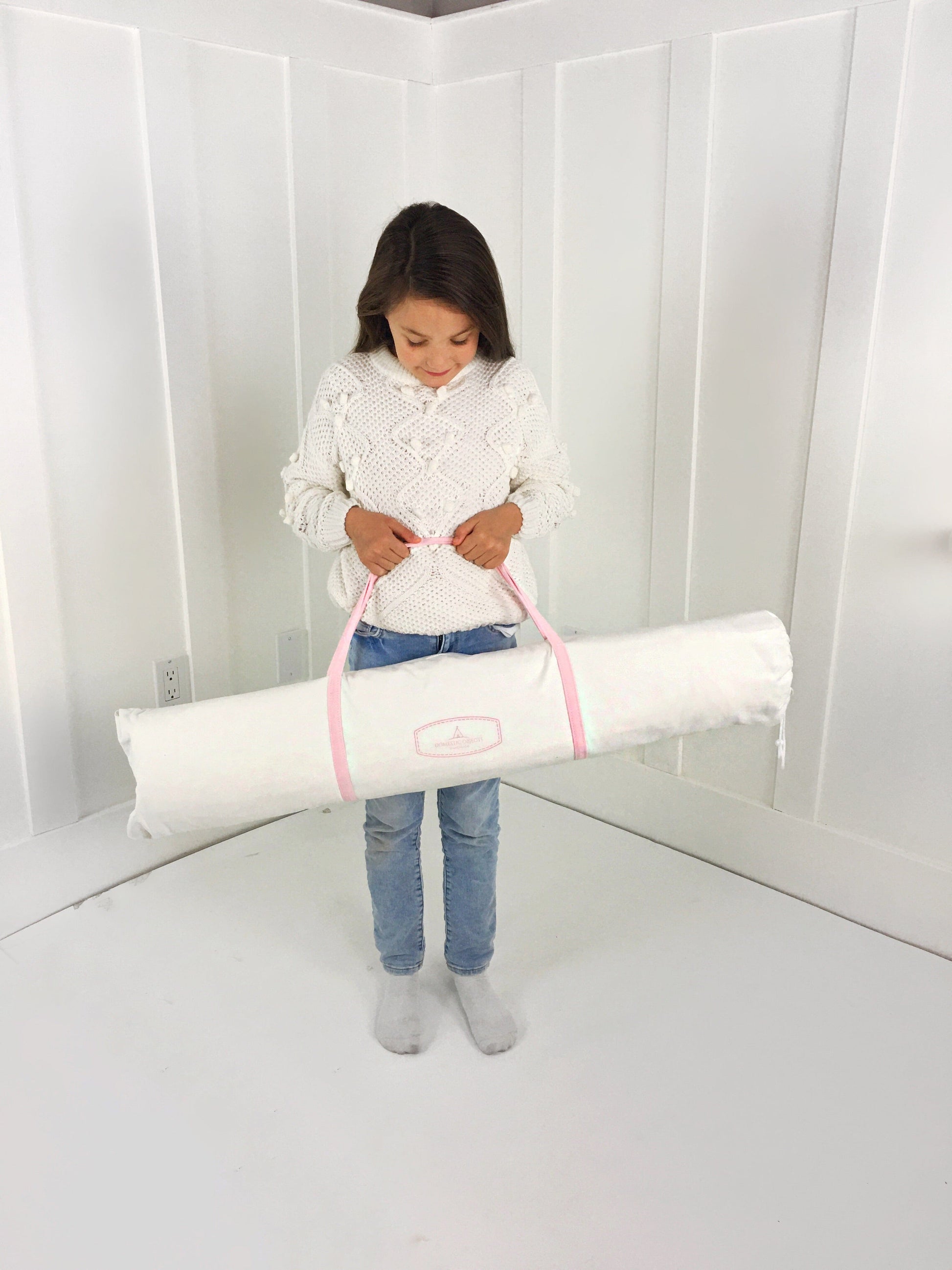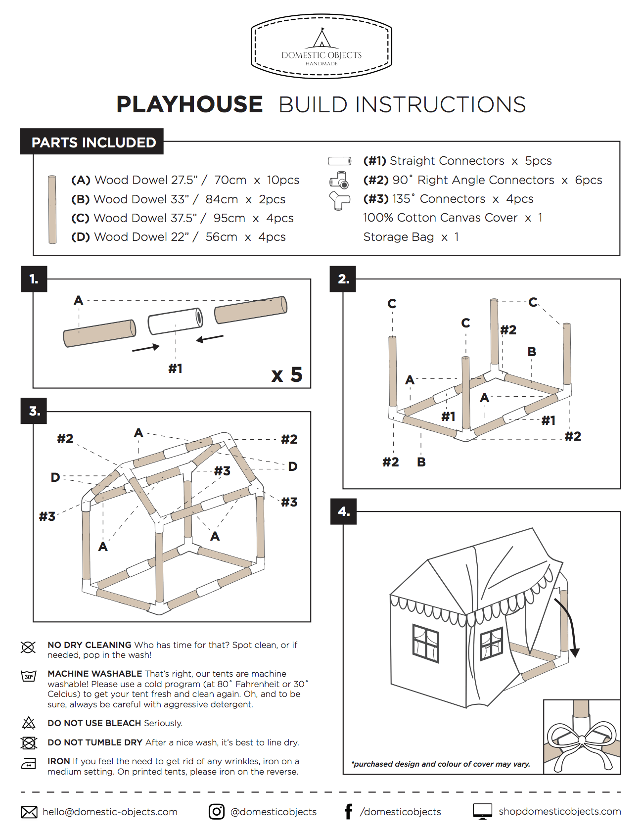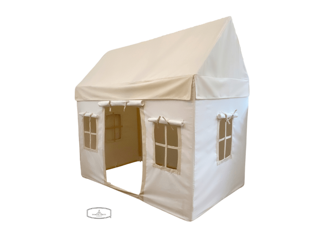 This absolutely adorable Playhouse is sure to enchant all the young ones in your life. The house is easy to assemble and is full of charming details. It's sturdy and will last for years. Comes with a matching canvas bag for storage and travel!