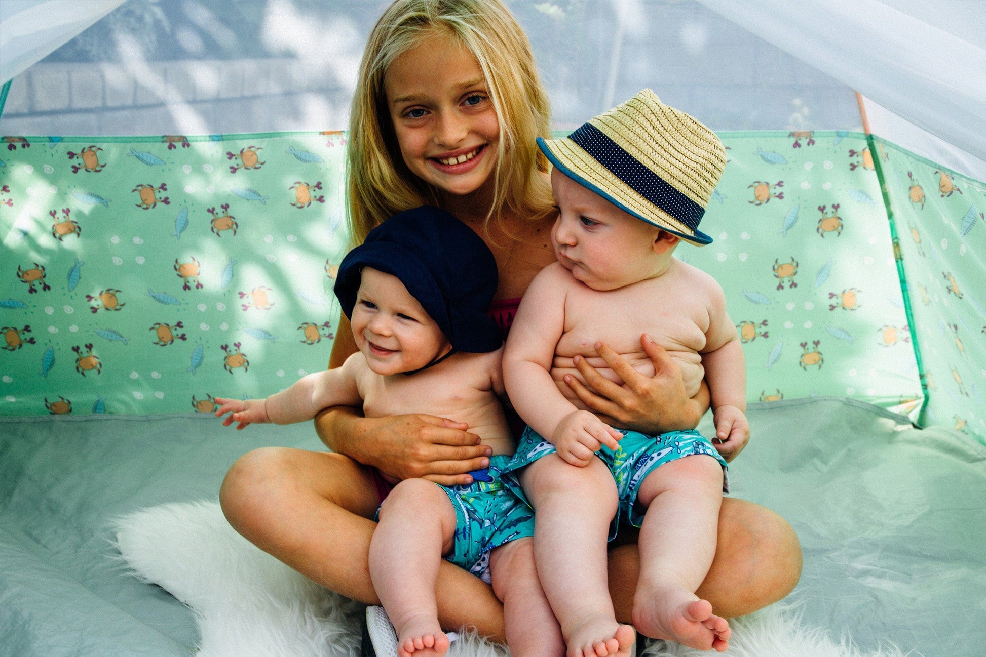 Under the sea is the place to be! Our indoor/outdoor Under The Sea Beach Cabana features friendly crab and fish designs and comes with a convenient travel bag.